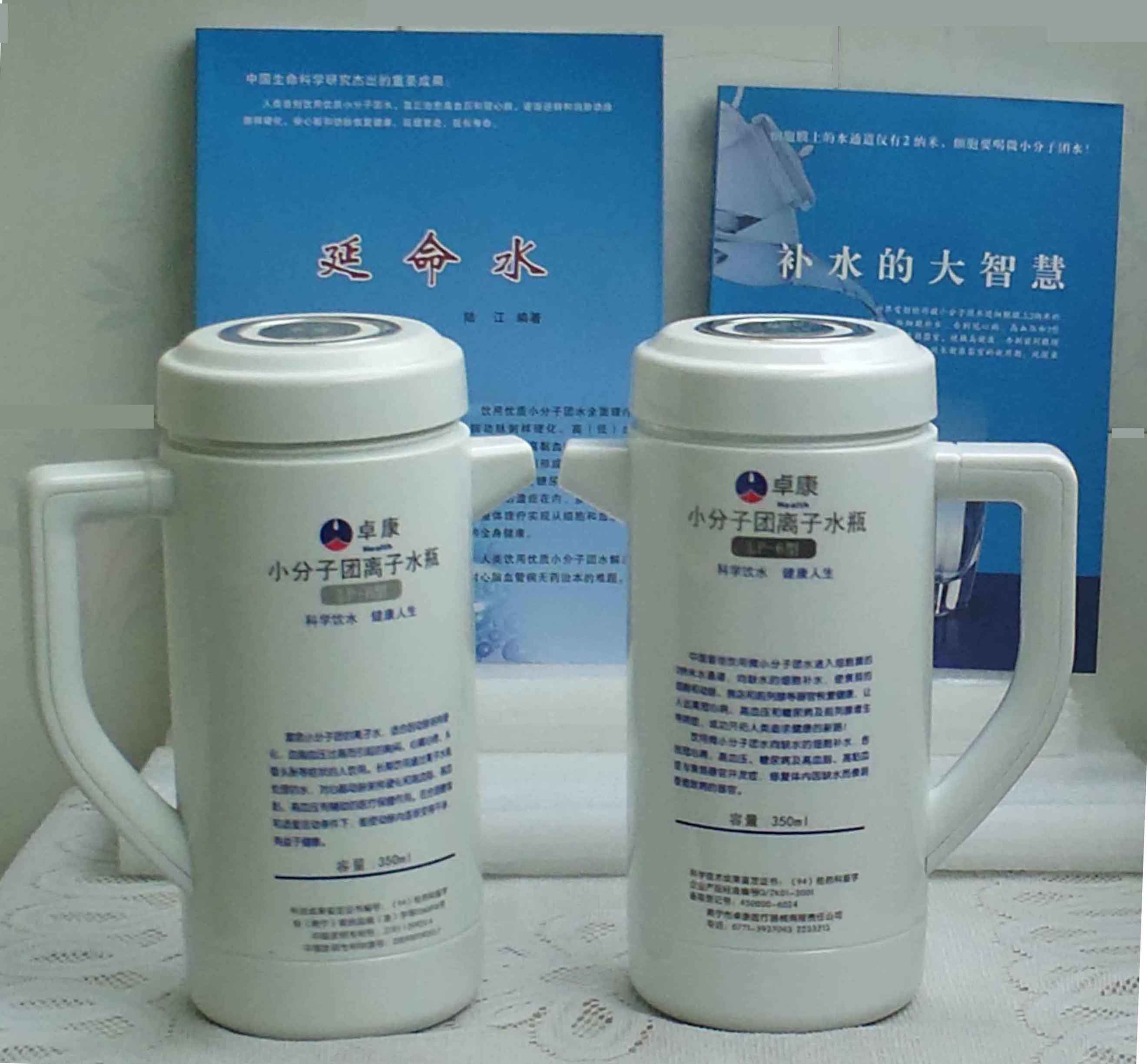 本品大量用戶(hù)的使用效果表明,能治愈冠心病、腦動(dòng)脈硬化、原發(fā)性高(低)血壓、高血脂、高粘血癥、高血尿酸癥(痛風(fēng))和2型糖尿病、衰弱器官并發(fā)癥(前列腺增生、腎衰與尿毒癥)及中風(fēng)后遺癥等療效好。產(chǎn)品配信譽(yù)卡。使用壽命30年,不換芯,易清洗。團(tuán)購(gòu)優(yōu)惠。從郵局匯款,匯費(fèi)1%,地址按本頁(yè)下方地址、聯(lián)系人寫(xiě)。從銀行匯款,請(qǐng)點(diǎn)擊[聯(lián)系匯款]欄,從工商銀行匯款,建設(shè)銀行、農(nóng)業(yè)銀行匯款,均免收匯費(fèi),匯款后20--30分鐘內(nèi)發(fā)短信,可用微信轉(zhuǎn)帳,均免匯費(fèi),微信號(hào)即手機(jī)號(hào)13768308380。匯款后,告知你的姓名和地址,我公司聯(lián)系人手機(jī)號(hào)是:13768308380。卓康牌離子水瓶為我公司獨(dú)家生產(chǎn),郵購(gòu)產(chǎn)品配《補(bǔ)水的大智慧》彩印書(shū)一本,另配四季出版社出版的新書(shū)《補(bǔ)水的大智慧》一本,并配光盤(pán)一張(含央視主持人釆訪(fǎng)陸江的對(duì)話(huà)視頻)。目前市場(chǎng)和"淘寶網(wǎng)"上有人兜售假冒的偽品,望讀者審察辯別真?zhèn)?,造假者剽竊假冒本公司的各種認(rèn)證、獲獎(jiǎng)獎(jiǎng)項(xiàng)、專(zhuān)利號(hào)和外包裝盒上的中英文字,包括科技成果的鑒定意見(jiàn)等,請(qǐng)讀者注意防偽。如何識(shí)別假貨?已經(jīng)買(mǎi)了假貨怎么辦?(請(qǐng)點(diǎn)擊[打假掠影][打假掠影])。