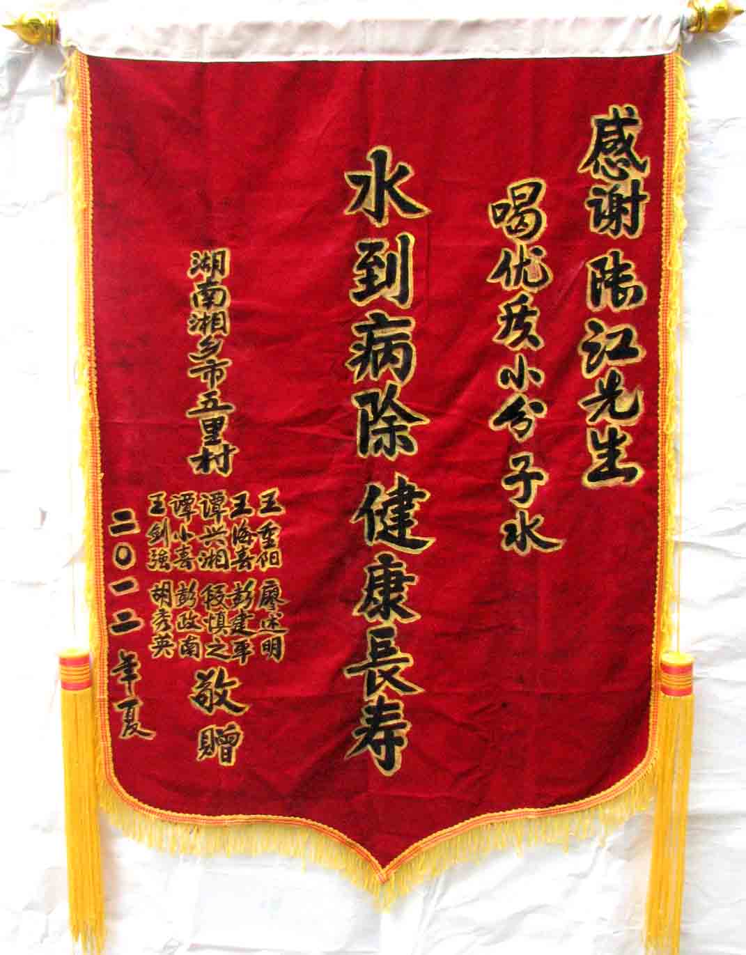新疆63歲的賀兆生飲用一年,冠心病未愈,他用電話(huà)介紹是食堂管理員,問(wèn)他食量多少?說(shuō)吃七八分飽,睡前還吃?xún)纱D蹋?江說(shuō)我在論文和書(shū)中多次批判“吃七八分飽”,關(guān)照患者務(wù)必用“己饑方食”控制主食肉食量,要他把牛奶改在早中餐吃,減少主食肉食量,建議不吃晩餐,晚上只吃一個(gè)蘋(píng)果,再經(jīng)幾個(gè)月補(bǔ)水節(jié)食,治愈了21年的冠心病和肥胖、失眠等病,信中由衷地感激陸 江為再生父母。[13]因?yàn)獒t(yī)生從未過(guò)問(wèn)他的膳食習(xí)慣,只管開(kāi)處方藥或手術(shù),父母也不會(huì)叫他不吃晩飯。